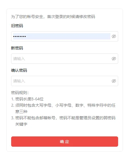 3) 密码不能包含邮箱帐号,密码不能是管理员设置的弱密码关键字
