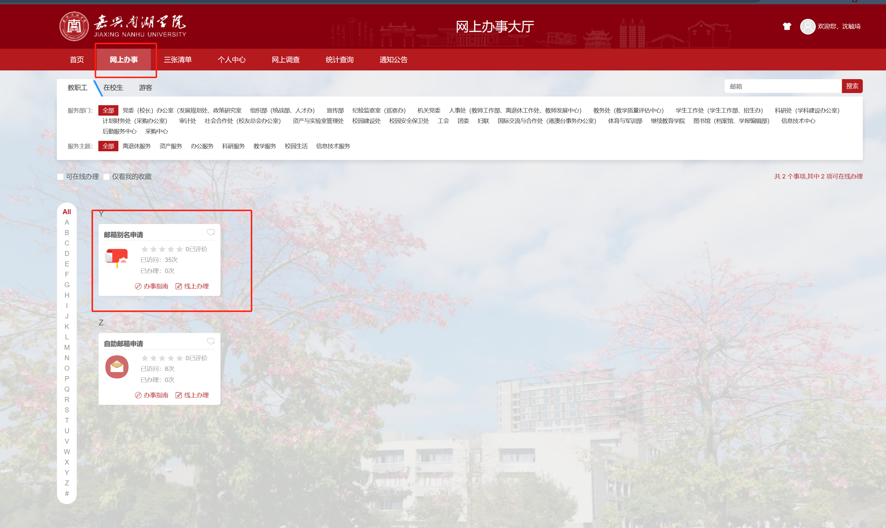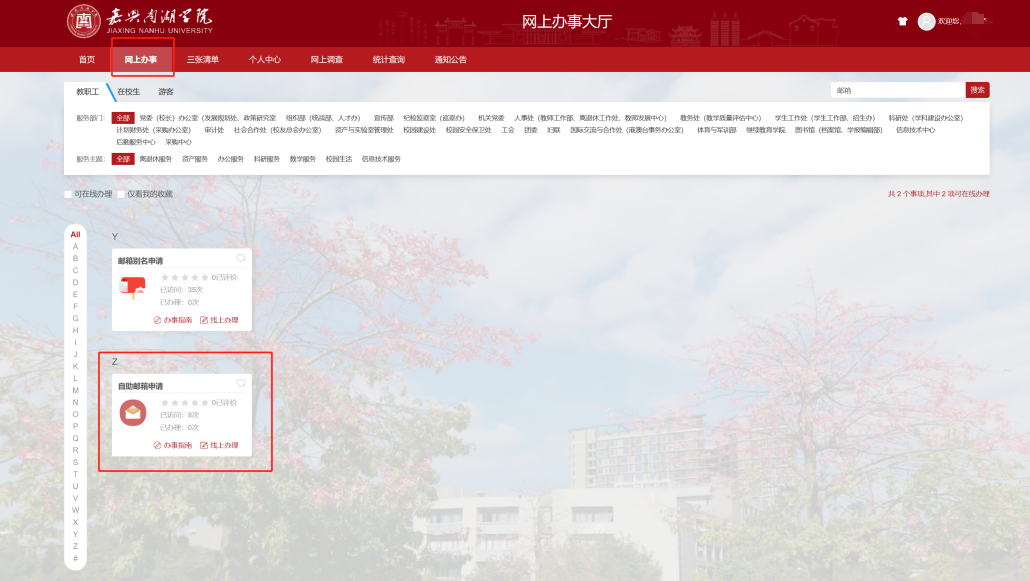 请登录service.jxnhu.edu.cn 办事大厅办理邮箱别名。(仅支持教职工办理别名)